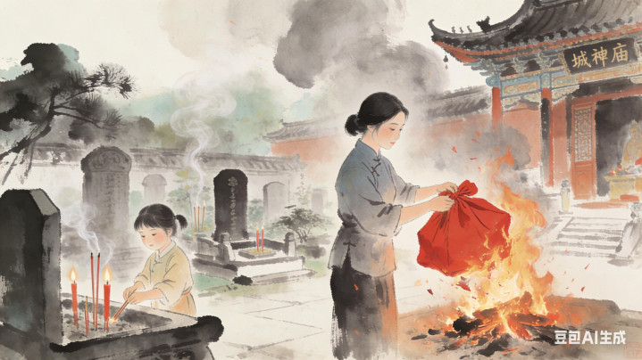 自后,我按老者指令,将红布包送至城隍庙焚化,并在墓园替那孩子供了香火。